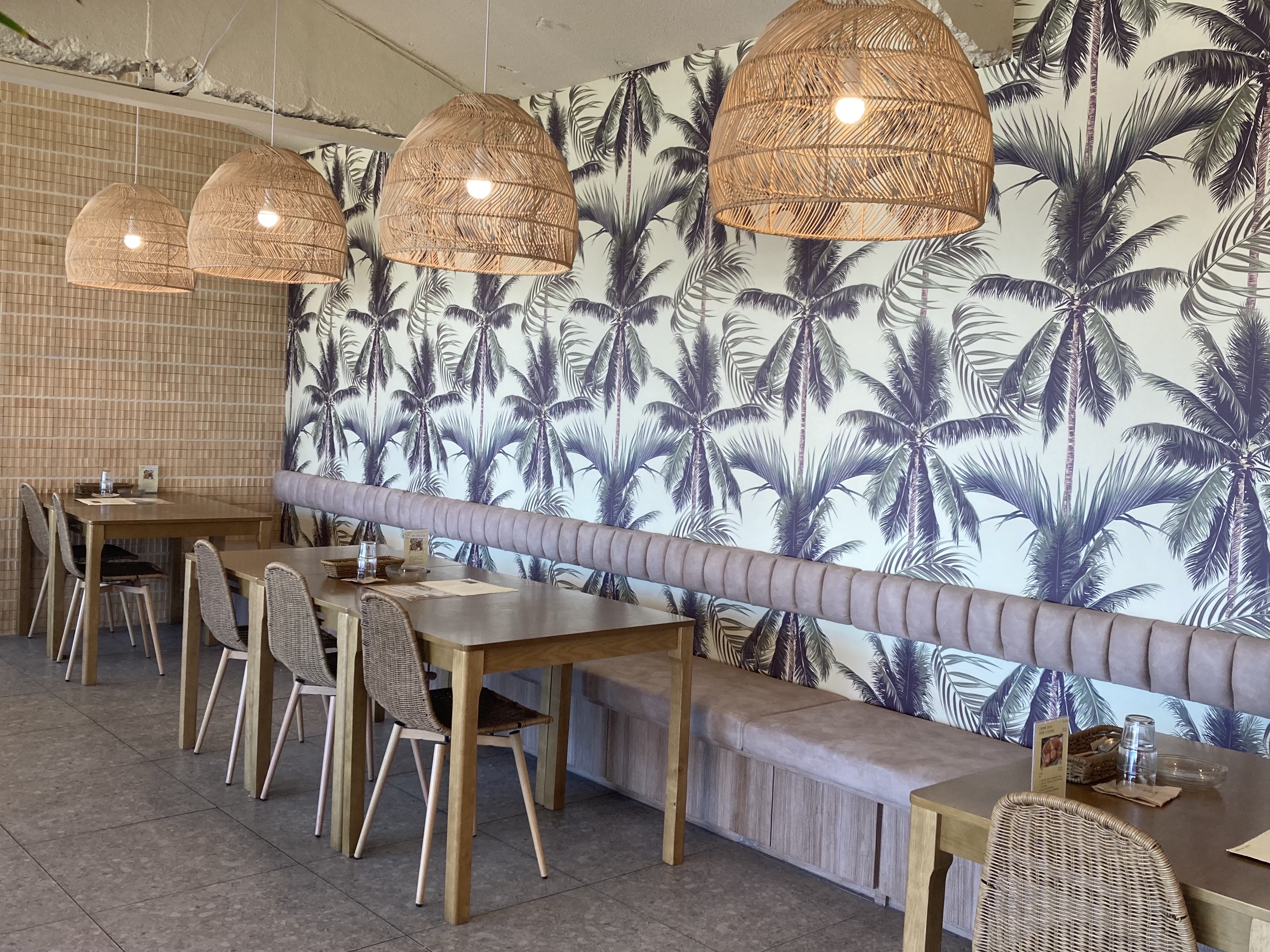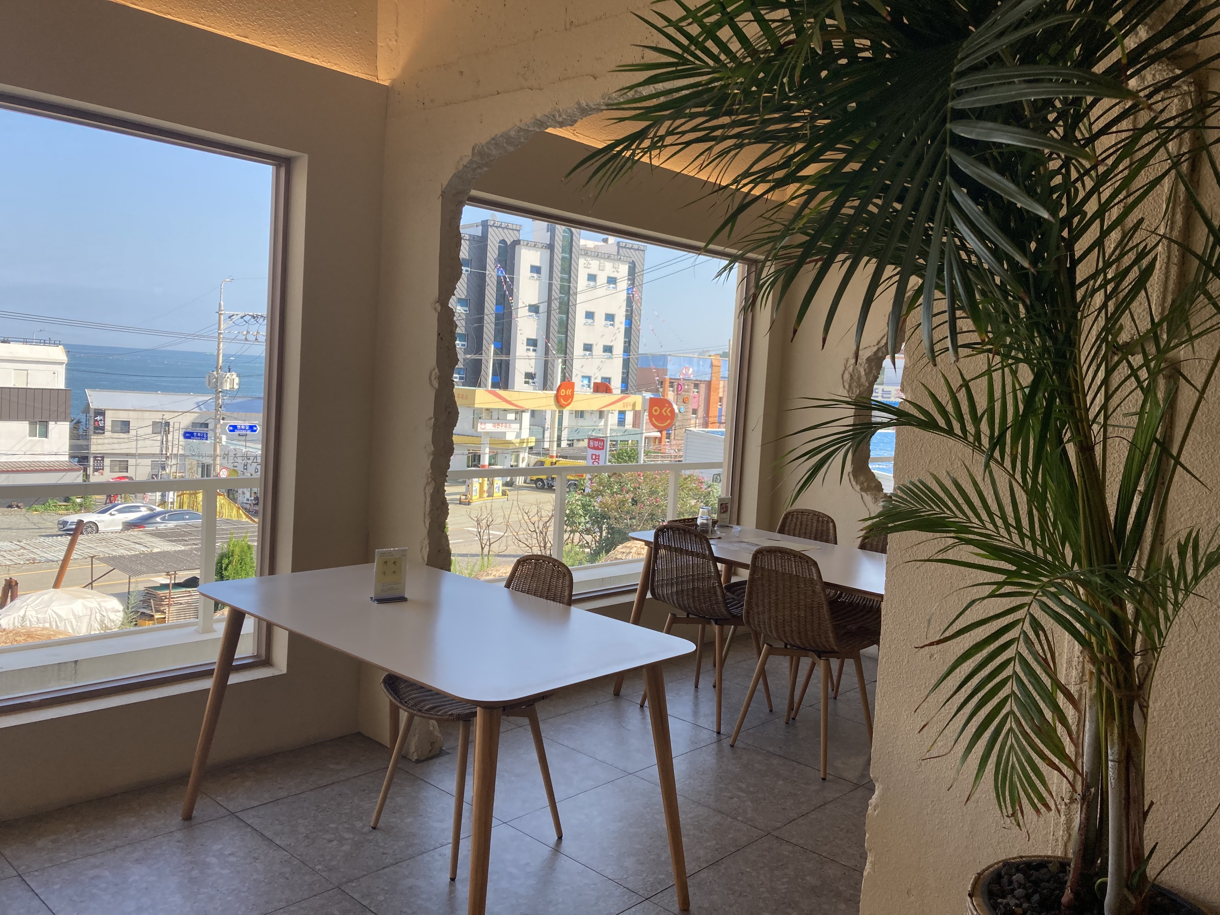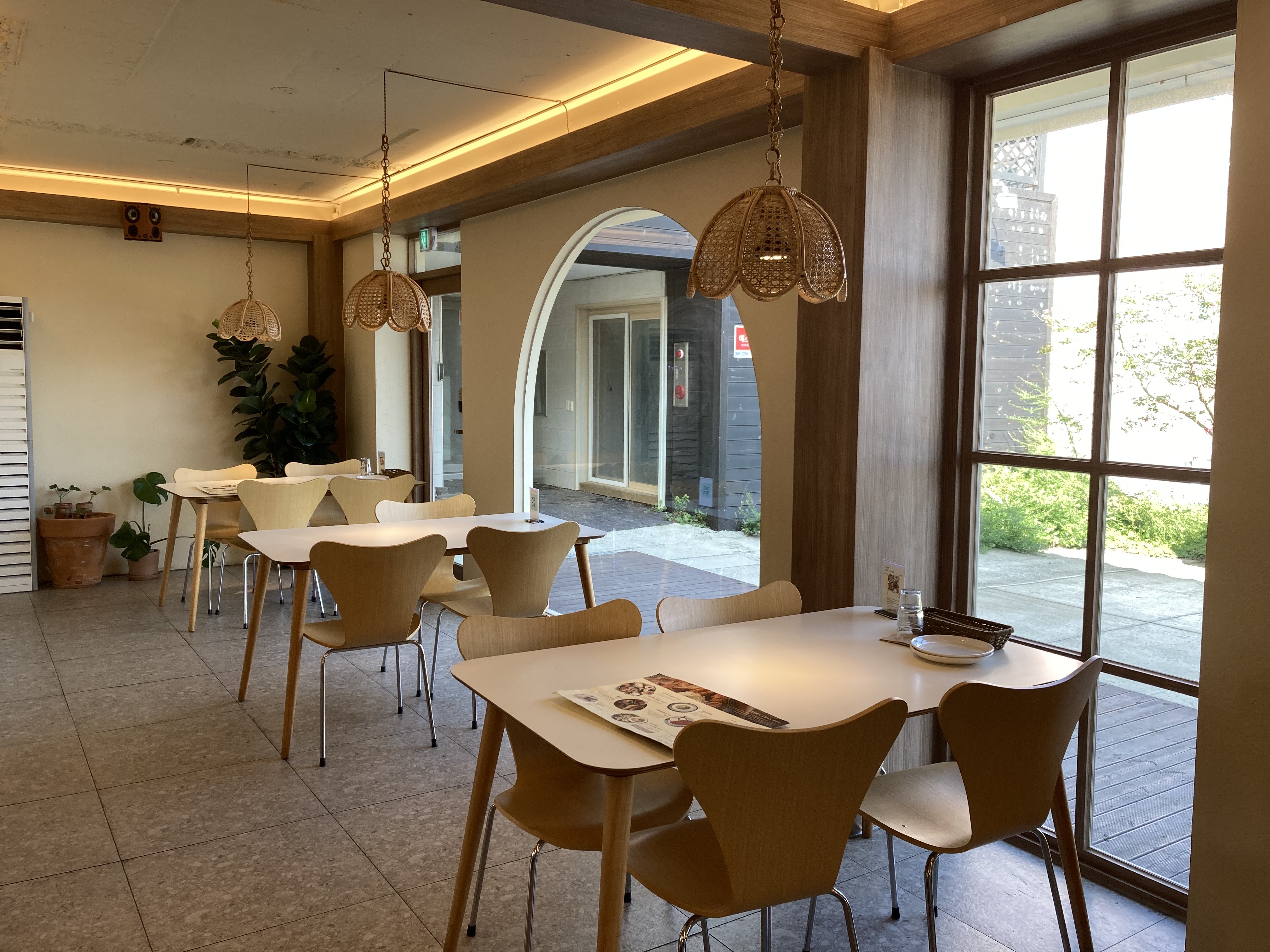 거리두기로 인해 테이블 중간중간에 비워져 있어요.