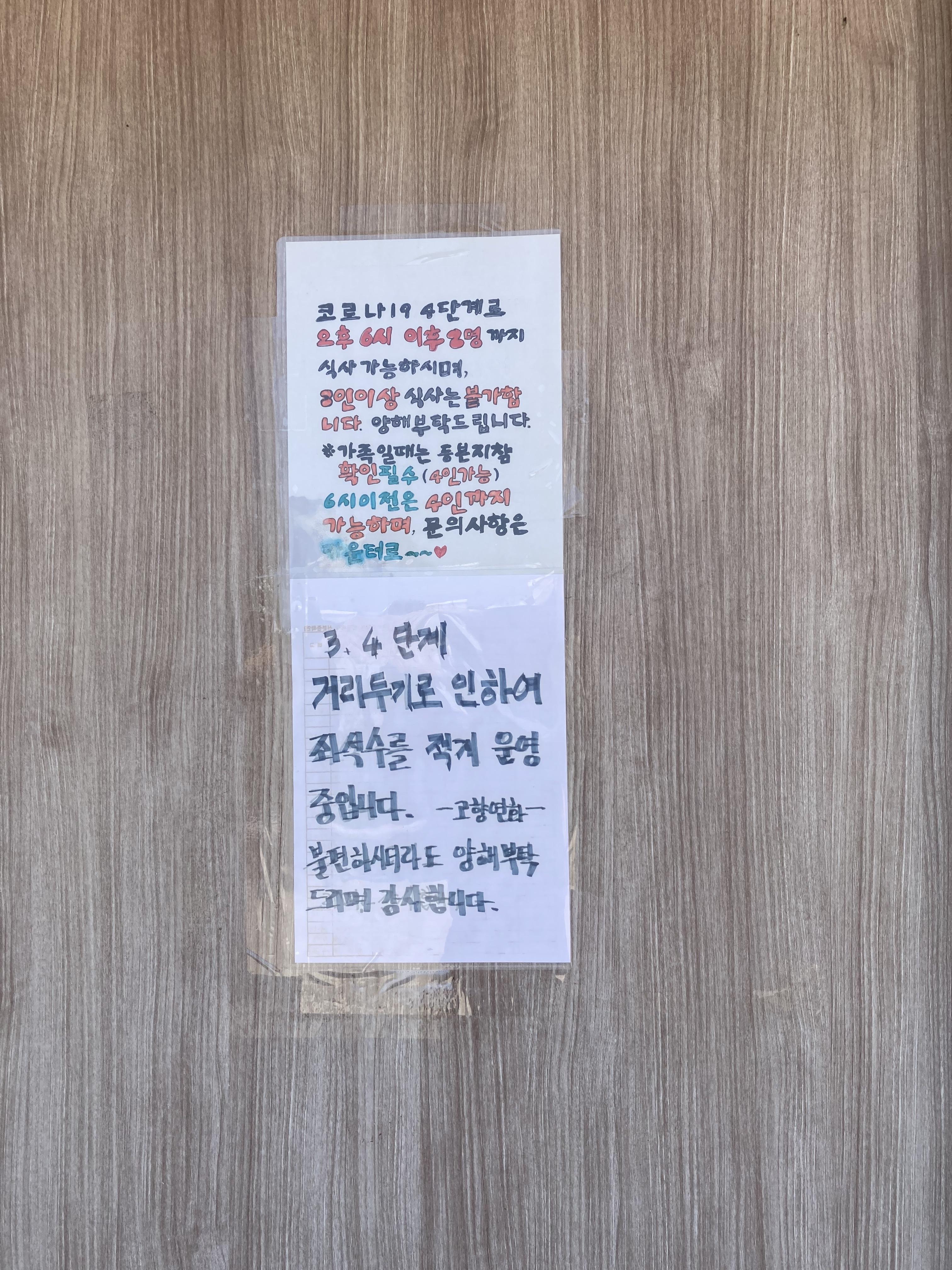 4단계로 6시 이후 3인 이상 식사 불가능!!