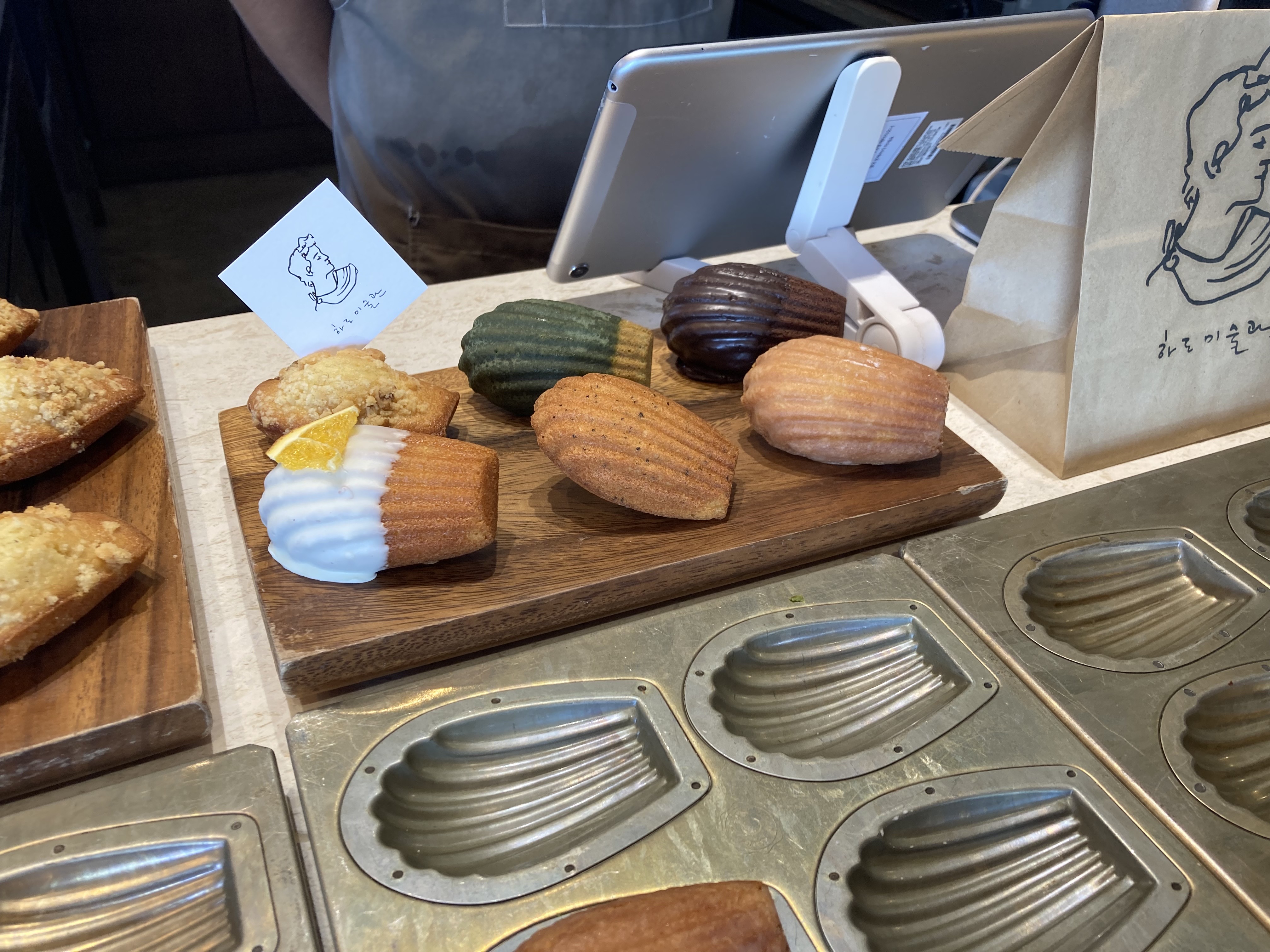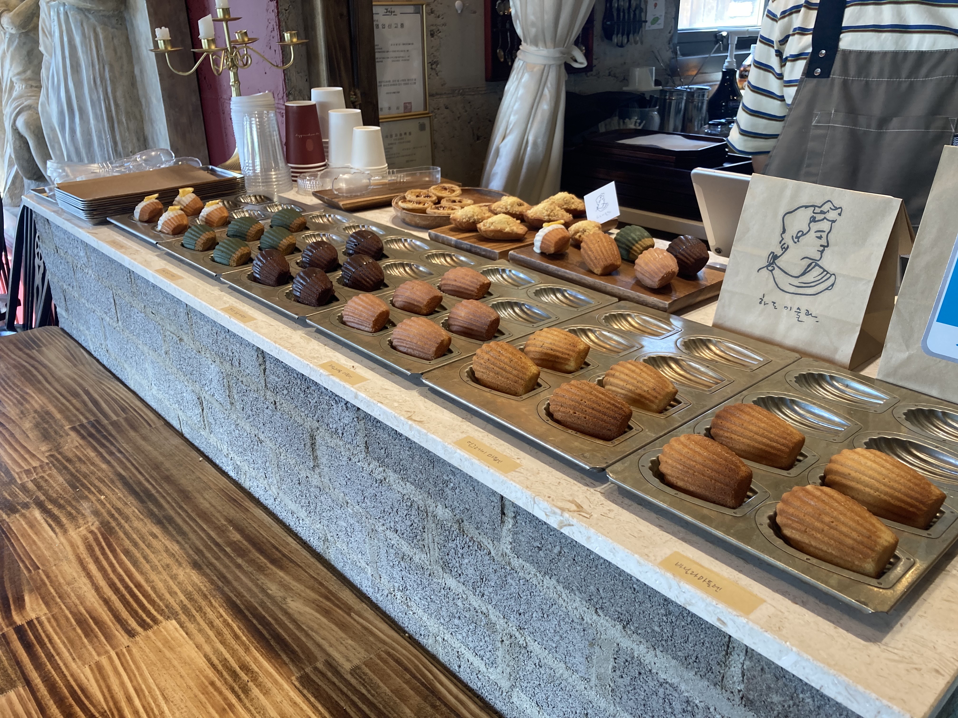 주문한 메뉴가 나왔는데, 하도리카는 크림이 쫀쫀하니 맛있었고, 마들렌도 괜찮았습니다!