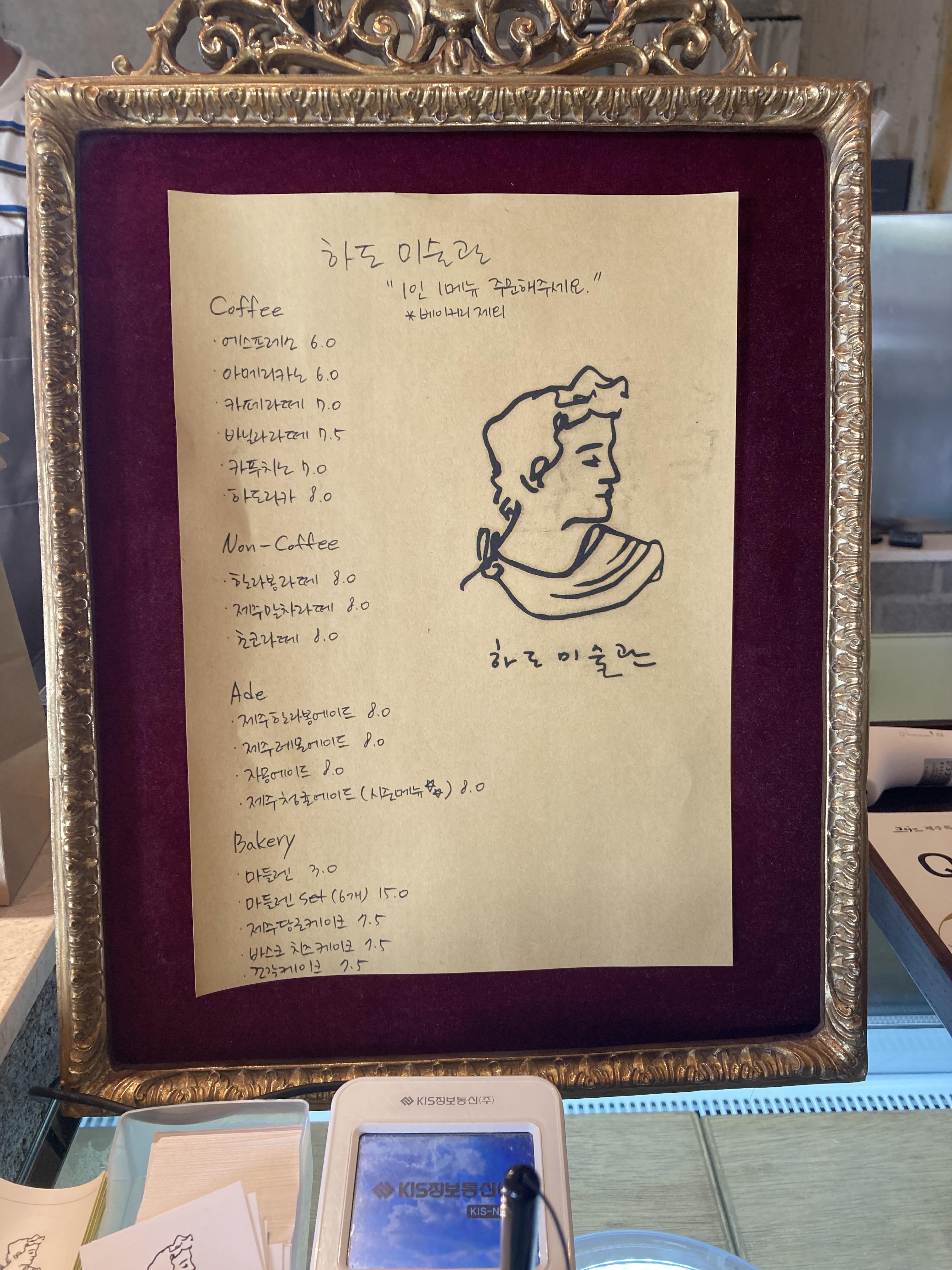 아이스 아메리카노, 하도리카, 마들렌 하나 주문 후 카페를 둘러봤습니다.
