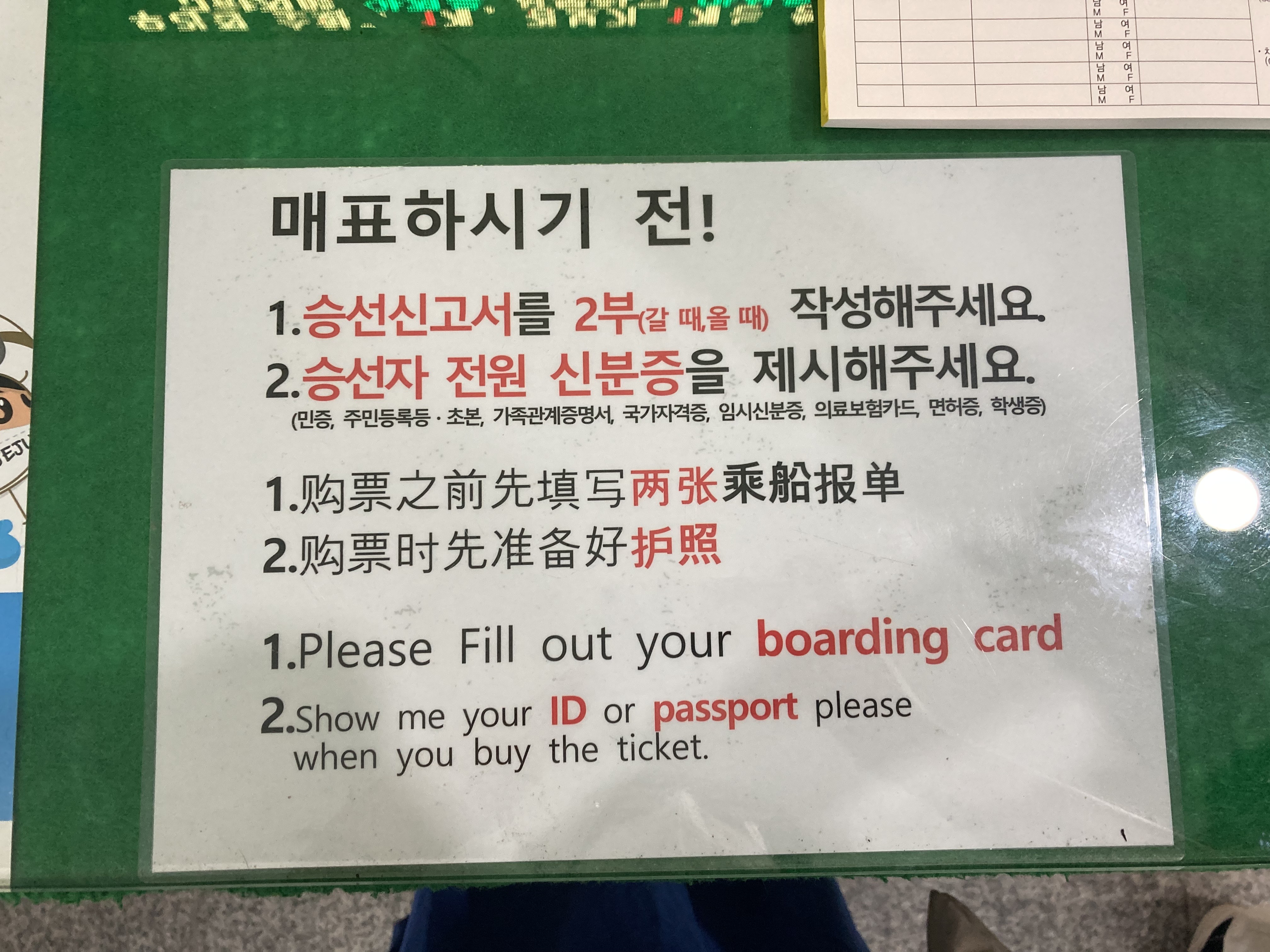 승선자 전원 신분증 가지고 매표소로 가면 됩니다.