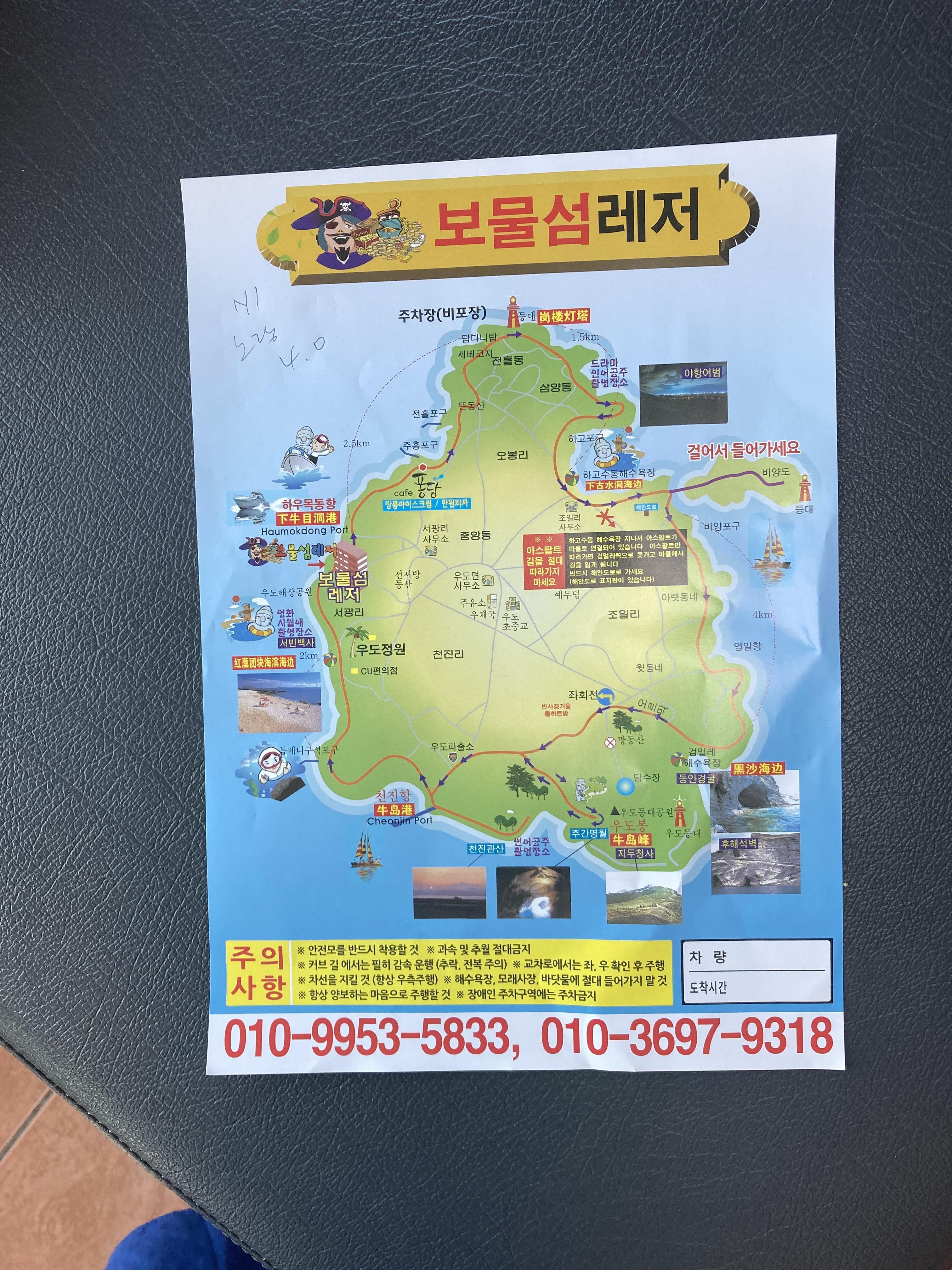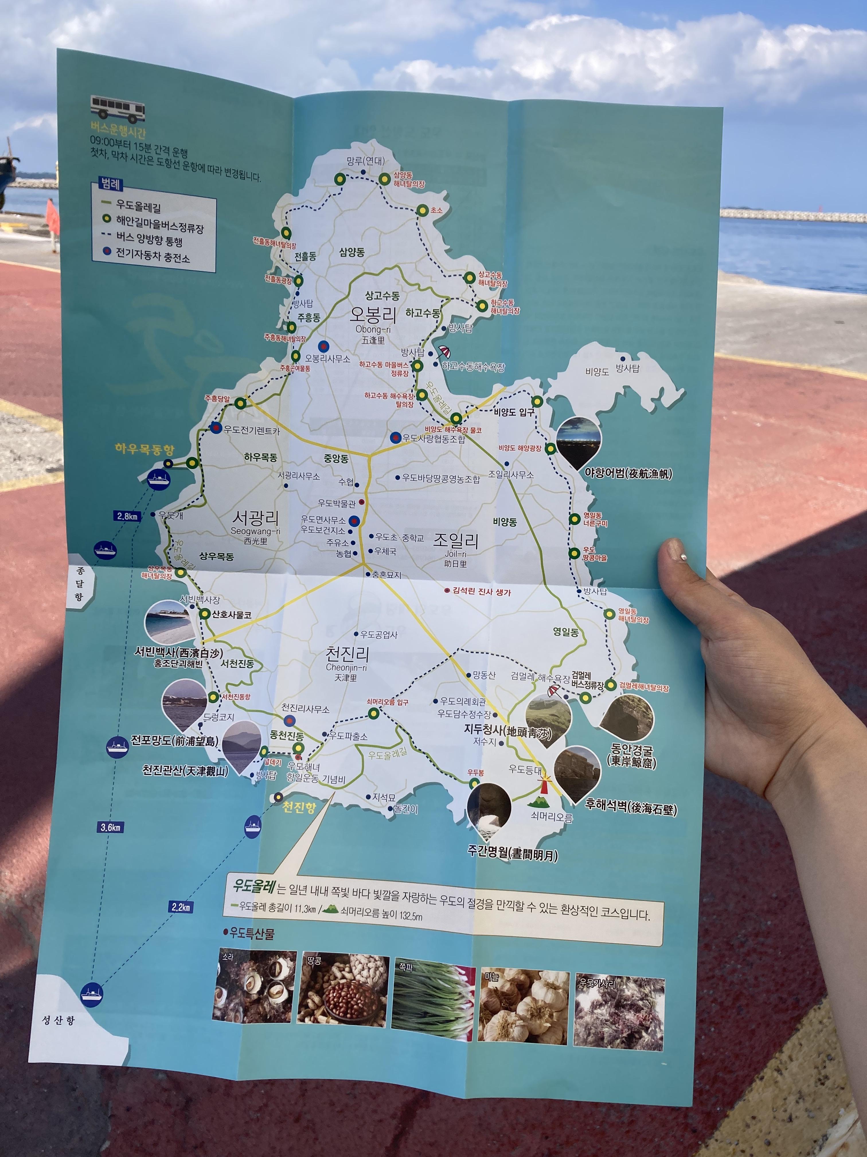 매표할 때 주는 지도로 2층 실내공간에서 우도 공부를 했어요!